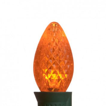 Orange C7 LED Christmas lights with faceted covers can be used in any C7 wire string.